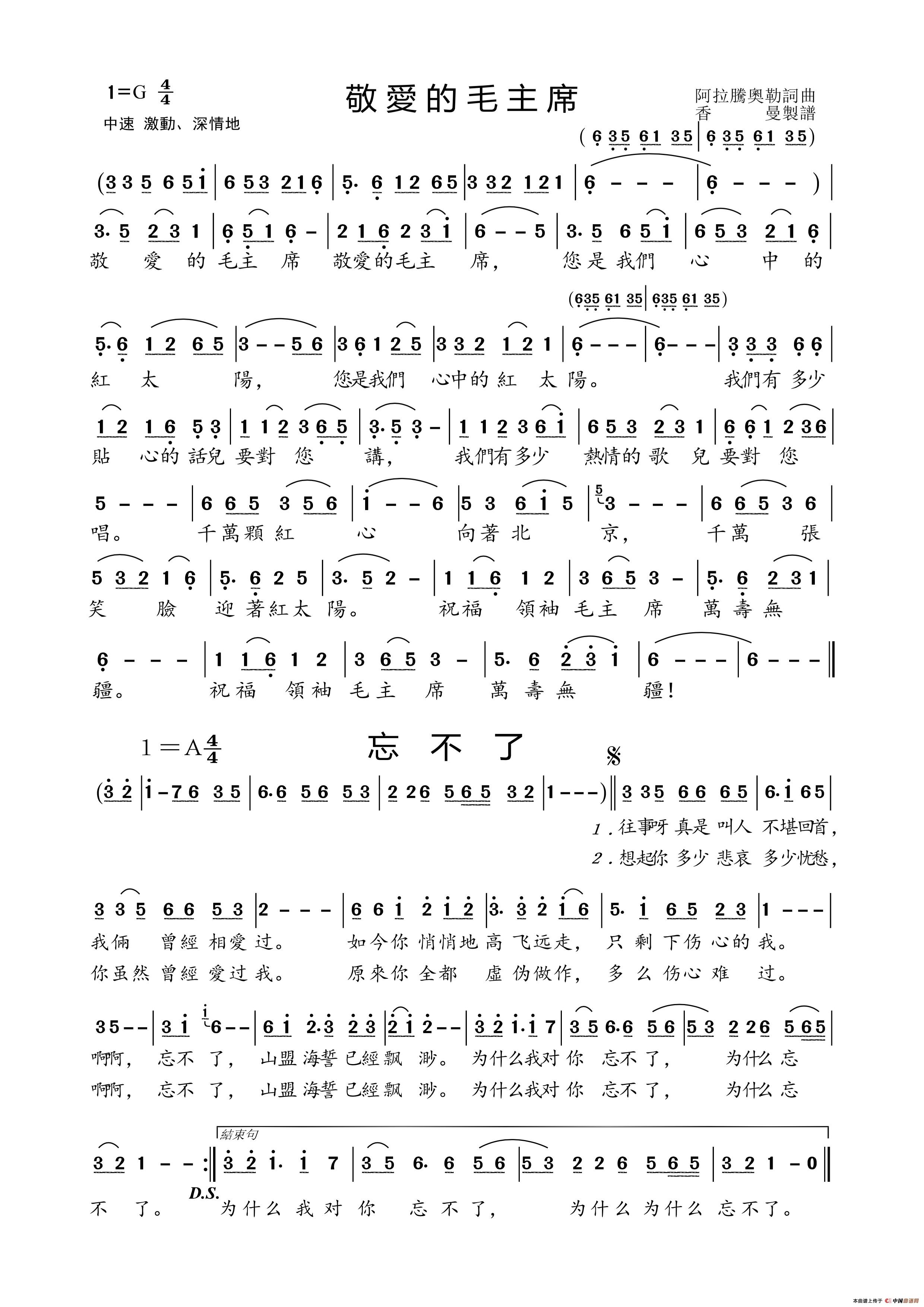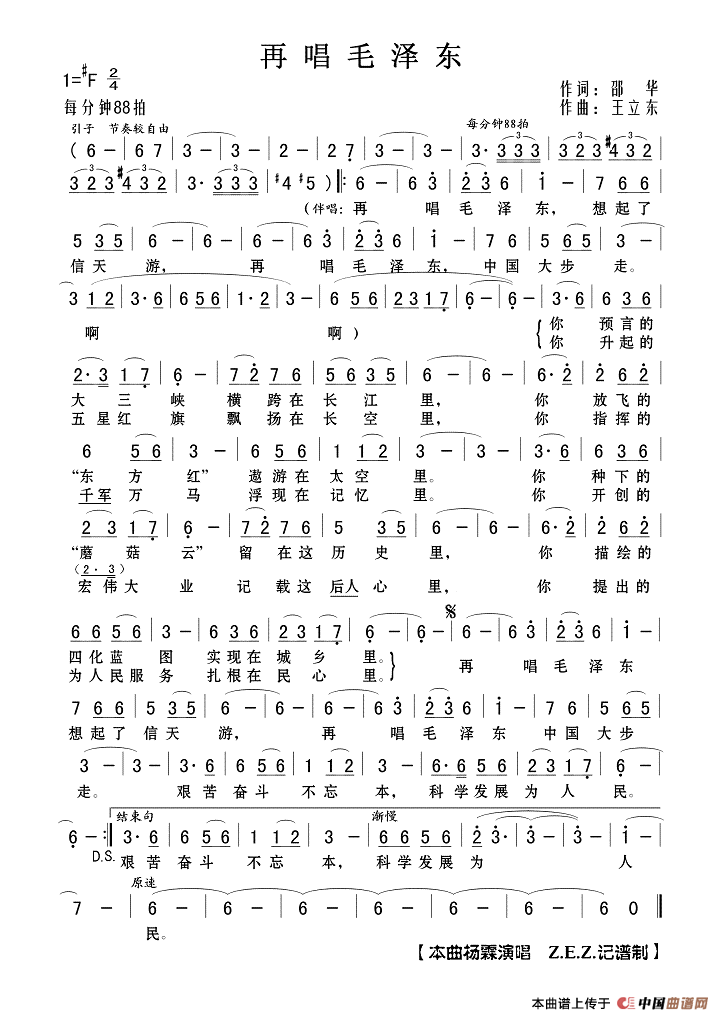 再唱毛泽东简谱 Z.E.Z.个人制谱园地 中国曲谱网