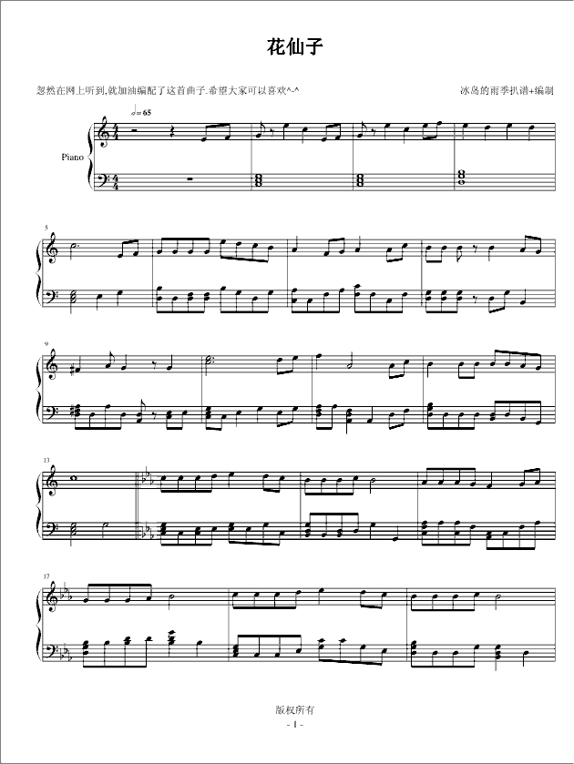 花仙子 冰岛的雨季,花仙子 冰岛的雨季钢琴谱,花仙子 冰岛的雨季钢琴谱网,花仙子 冰岛的雨季钢琴谱大全,虫虫钢琴谱下载