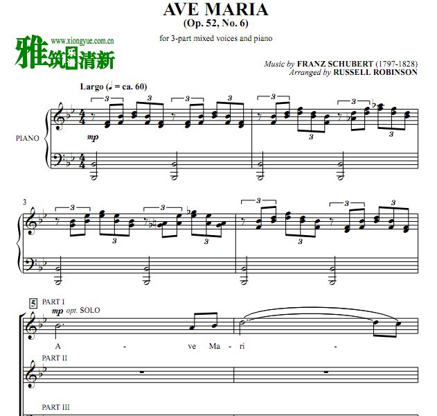 舒伯特 Ave Maria圣母颂钢琴伴奏合唱谱