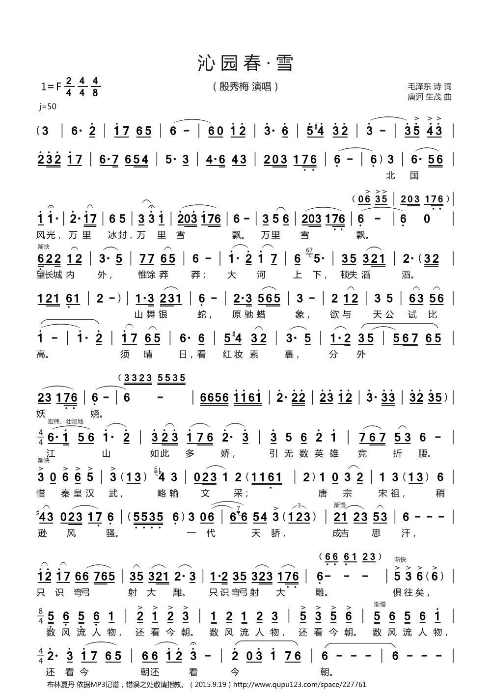 沁园春雪简谱_沁园春雪简谱廖昌永(3)