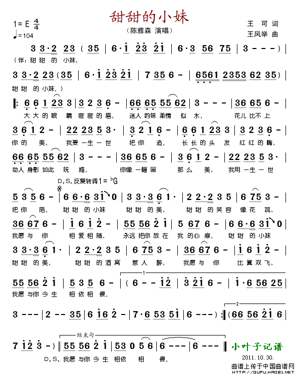 甜甜的小妹简谱 谱友园地 中国曲谱网