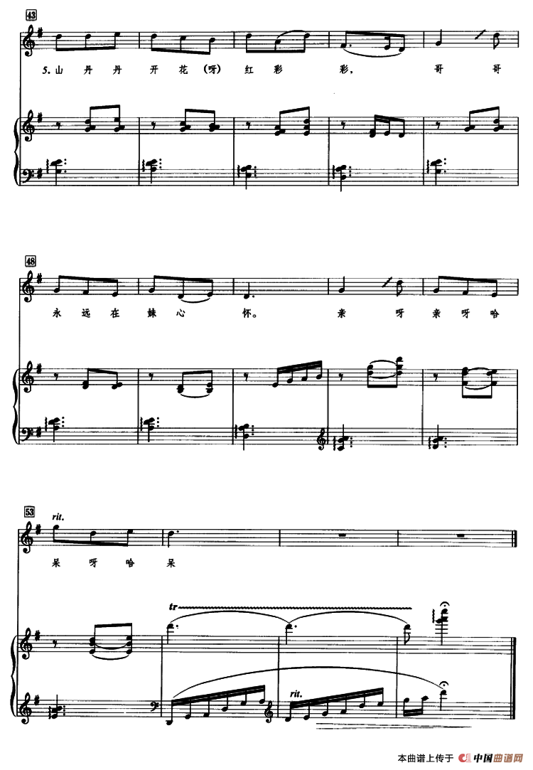 山里哥哥简谱 找歌谱网
