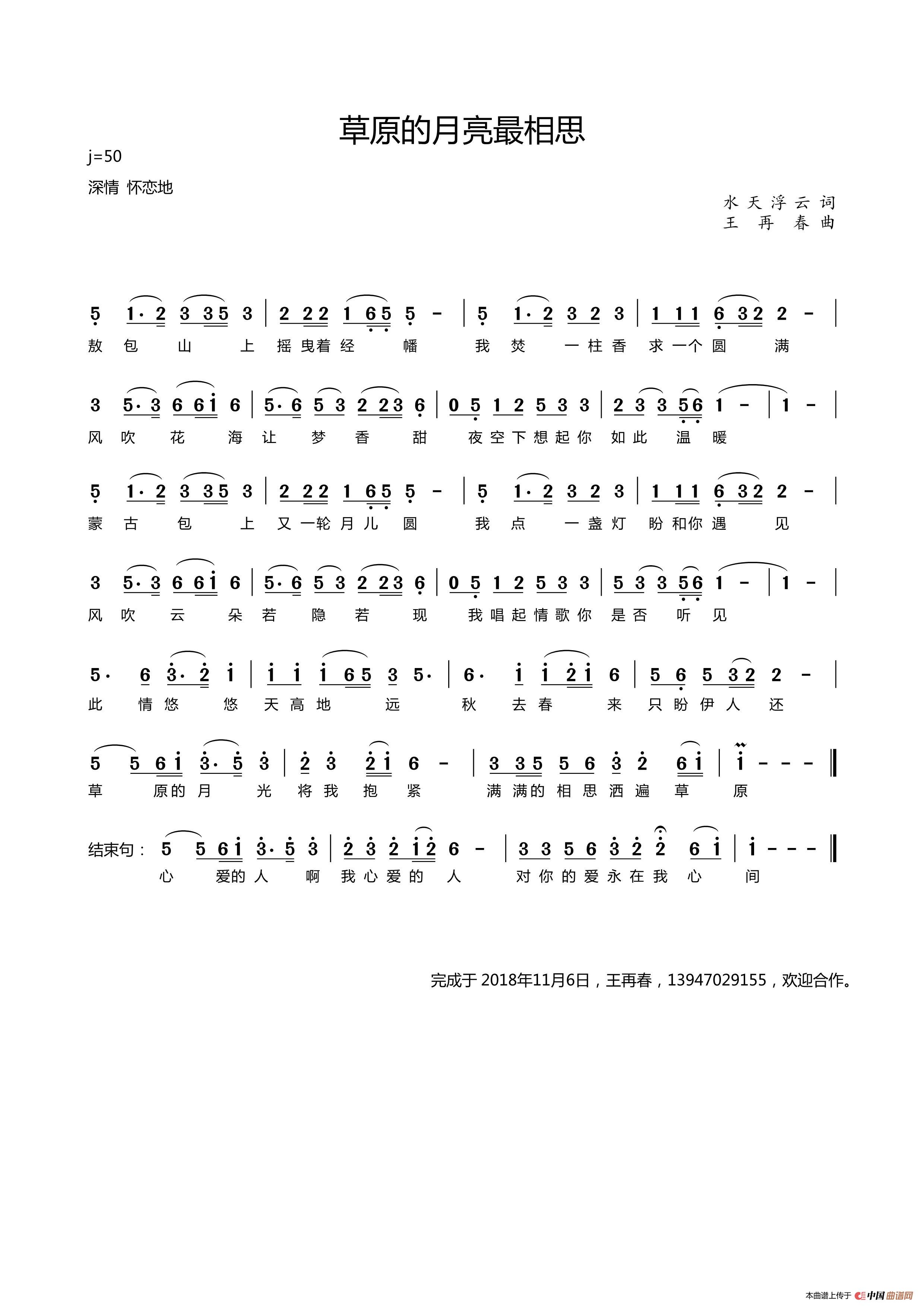 草原我的情人简谱 秋叶起舞个人制谱园地 中国曲谱网