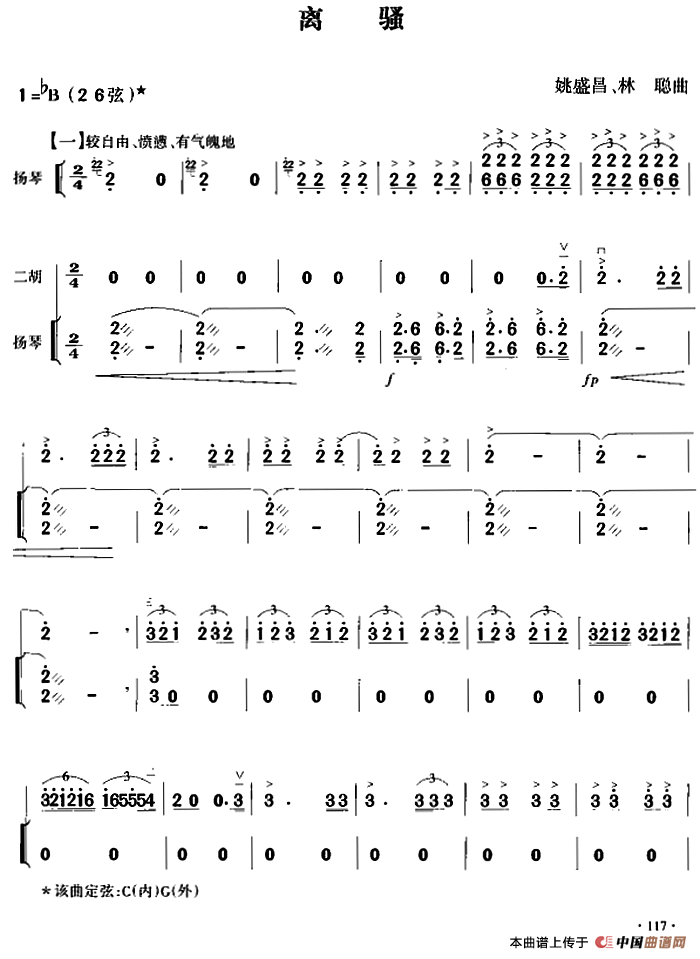 离骚二胡谱 胡琴谱 胡琴 扬琴伴奏 器乐乐谱 中国曲谱网