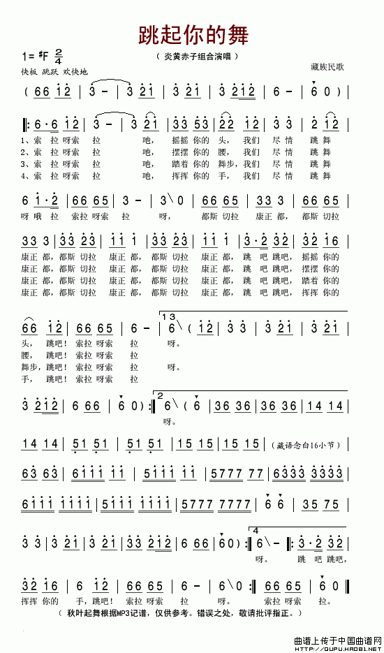 跳起你的舞简谱 秋叶起舞个人制谱园地 中国曲谱网