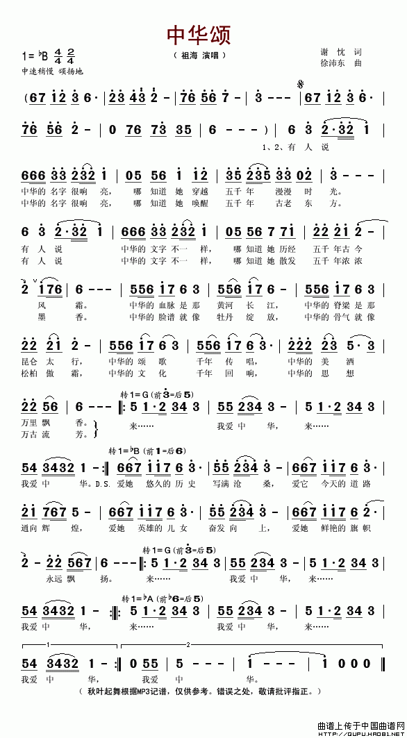 中华颂简谱 谢忱词 徐沛东曲 秋叶起舞个人制谱园地 中国曲谱网