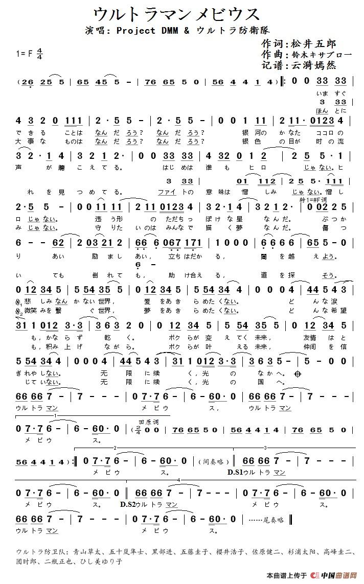 求宇宙英雄 初代 奥特曼主题曲简谱 不是歌词