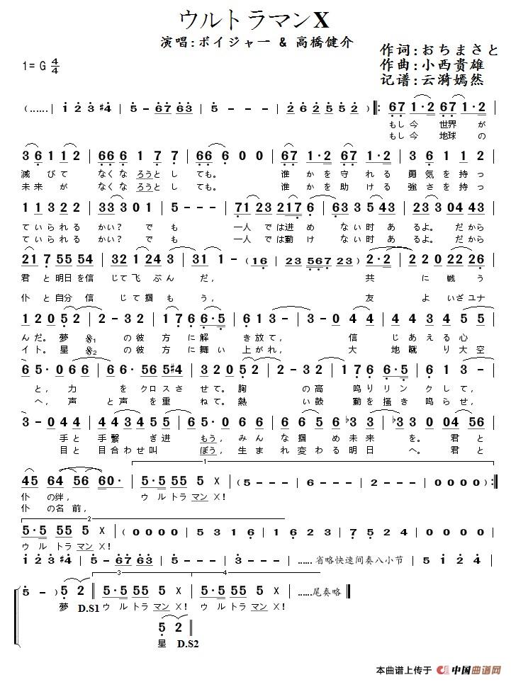 ウルトラマンX简谱 艾克斯奥特曼 某懒癌晚期个人制谱园地 中国曲谱网
