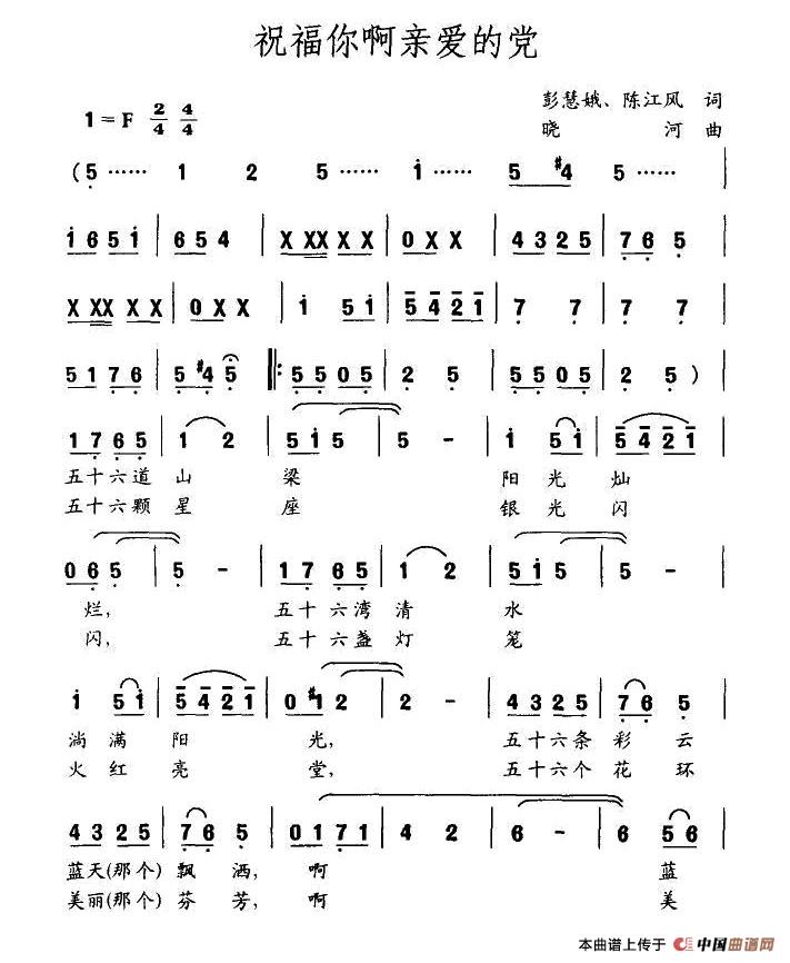 祝福你啊亲爱的党简谱 彭慧娥词 晓河曲 民歌曲谱 中国曲谱网