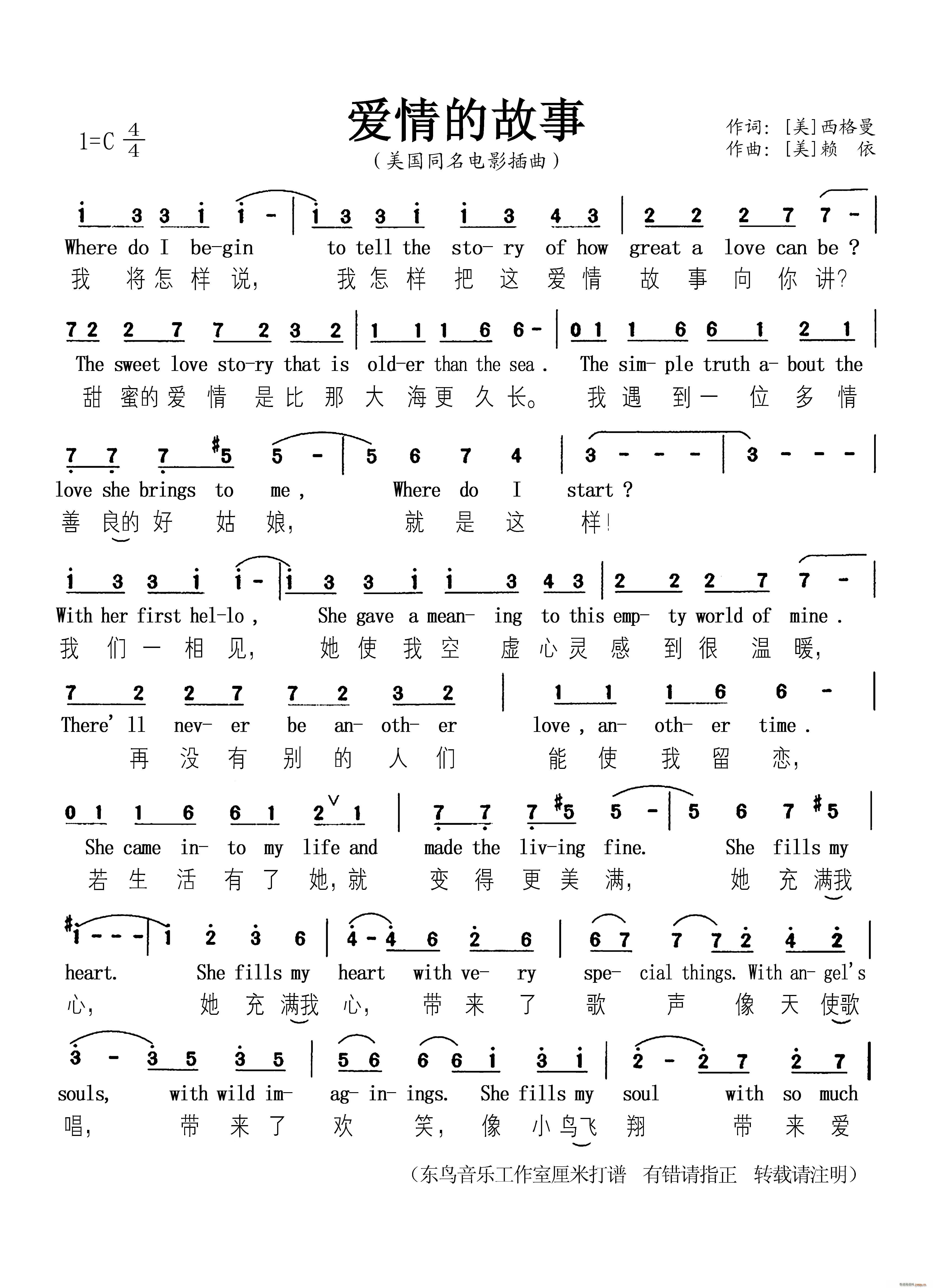 爱情故事 英汉 简谱 美国影片 爱情故事 插曲 瓦莲金娜个人制谱园地 中国曲谱网
