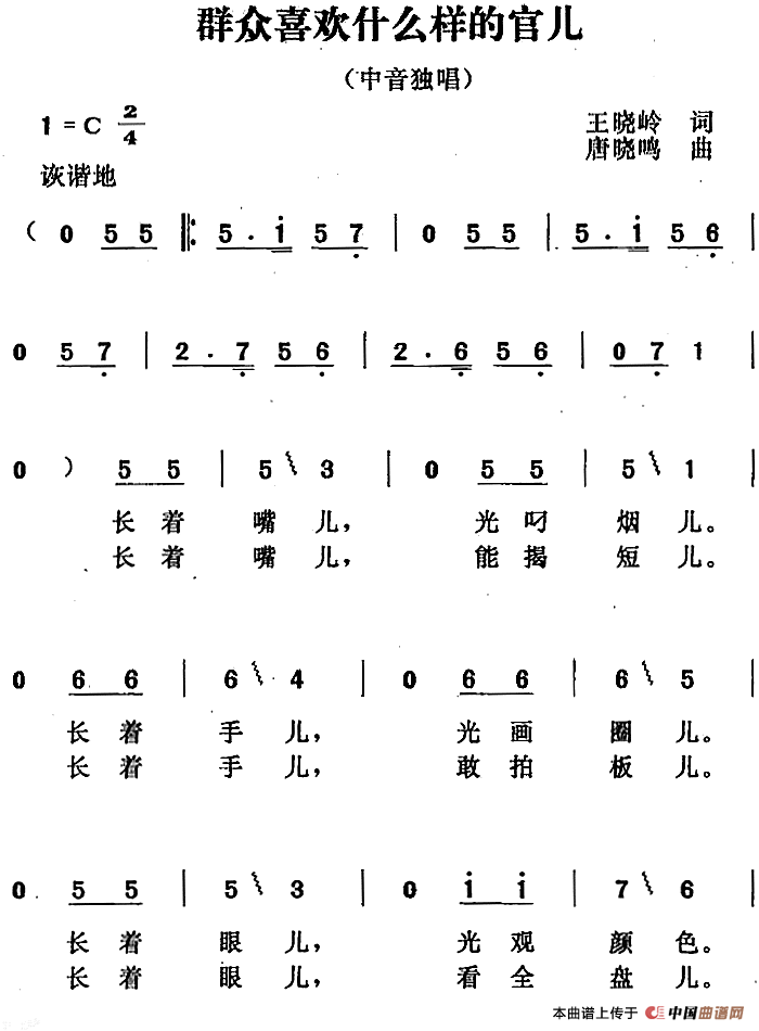 群众喜欢什么样的官儿简谱 民歌曲谱 中国曲谱网