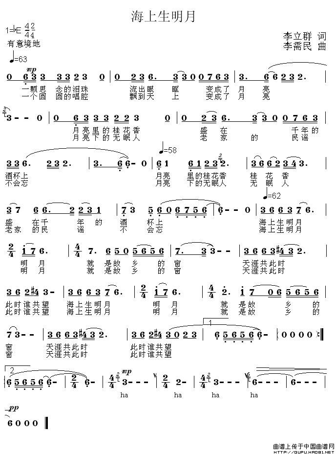 海上生明月简谱 李立群词 李需民曲 李需民原创曲谱专栏 中国曲谱网