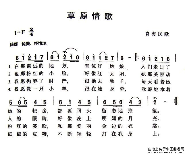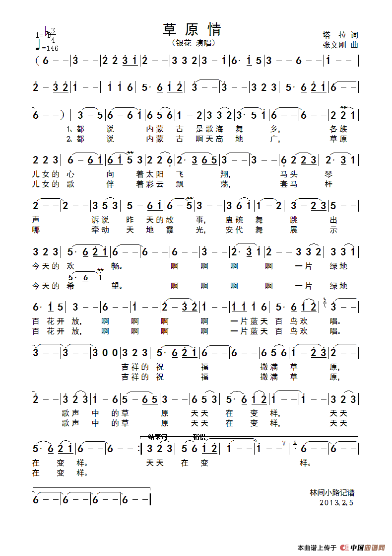 草原情简谱 刘伟词 牛世强曲 民歌曲谱 中国曲谱网