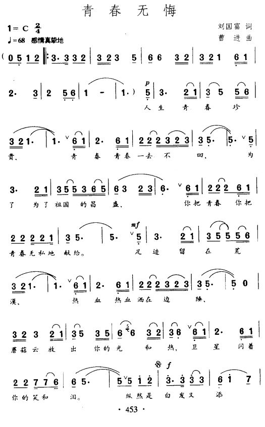原创音乐曲谱 青春无悔 陈善友词,黄清林曲 Powered by Discuz