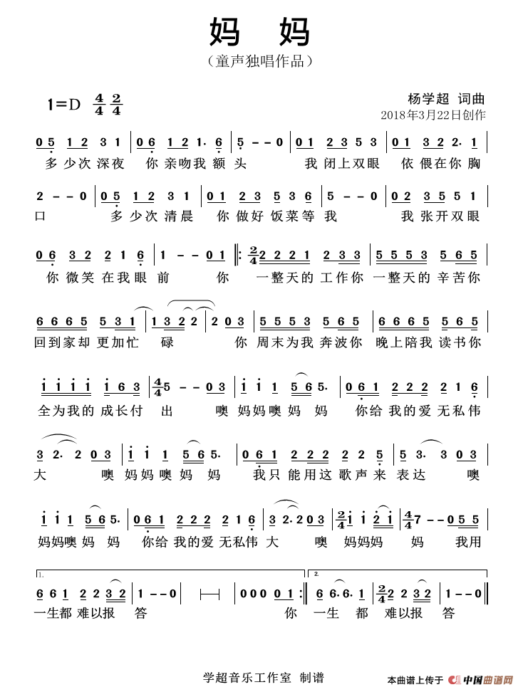 中华妈妈 妈妈中华简谱 又名 中华妈妈 致铭原创曲谱专栏 中国曲谱网