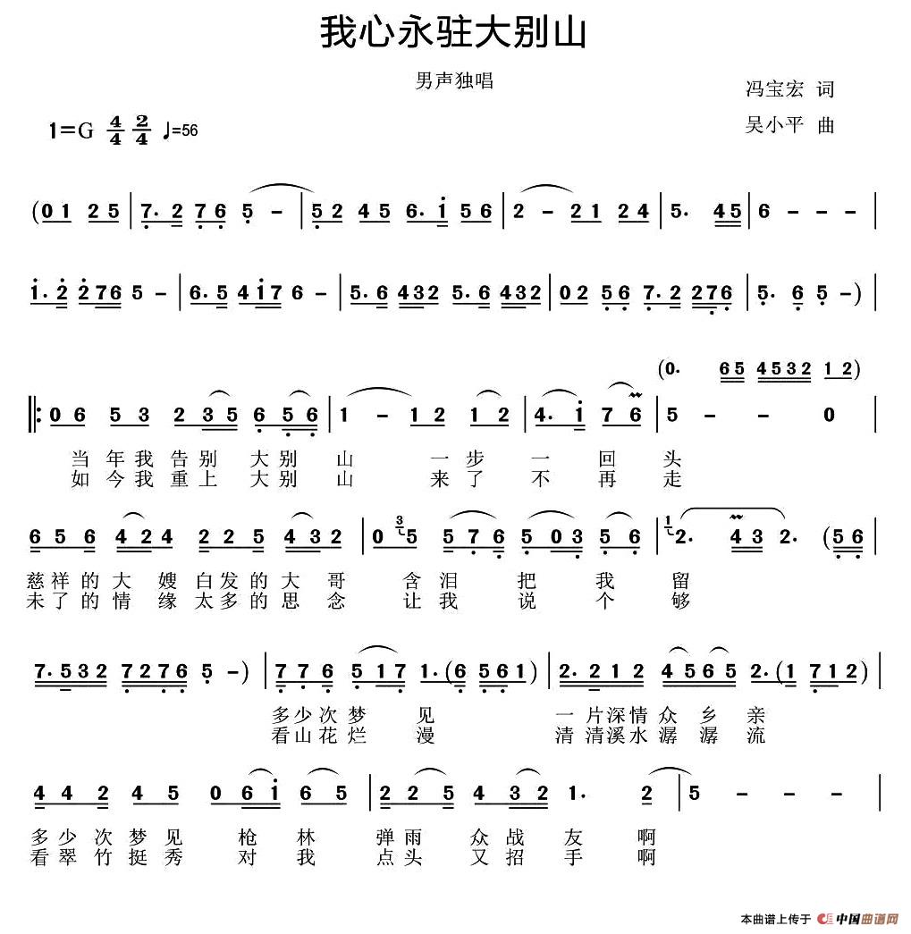 我心永驻大别山简谱 民歌曲谱 中国曲谱网