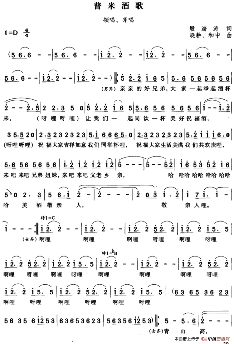 请进屋来喝杯酒简谱 民歌曲谱 中国曲谱网
