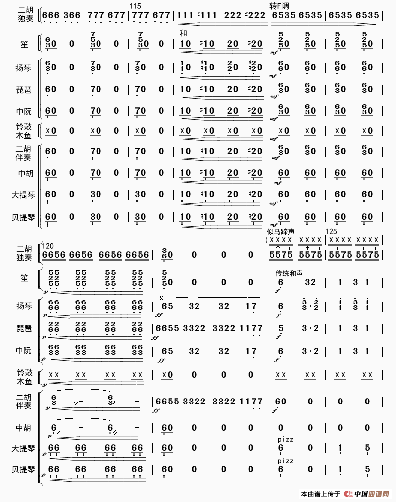 战马奔腾1二胡 战马奔腾1二胡简谱 战马奔腾1二胡吉他谱 钢琴谱 查字典简谱网