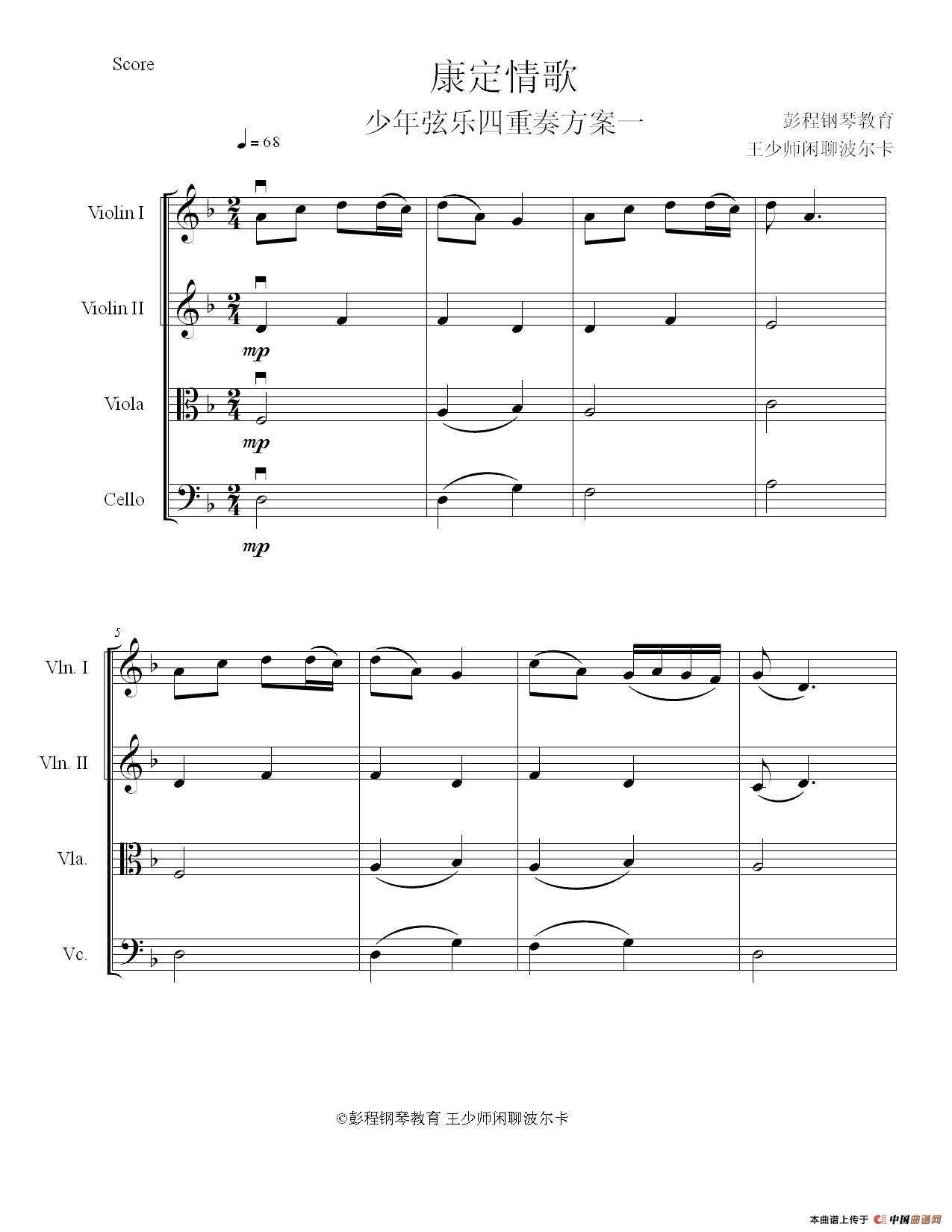 康定情歌 弦乐四重奏小品