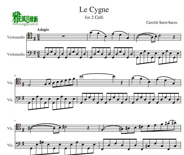 圣桑天鹅大提琴二重奏谱