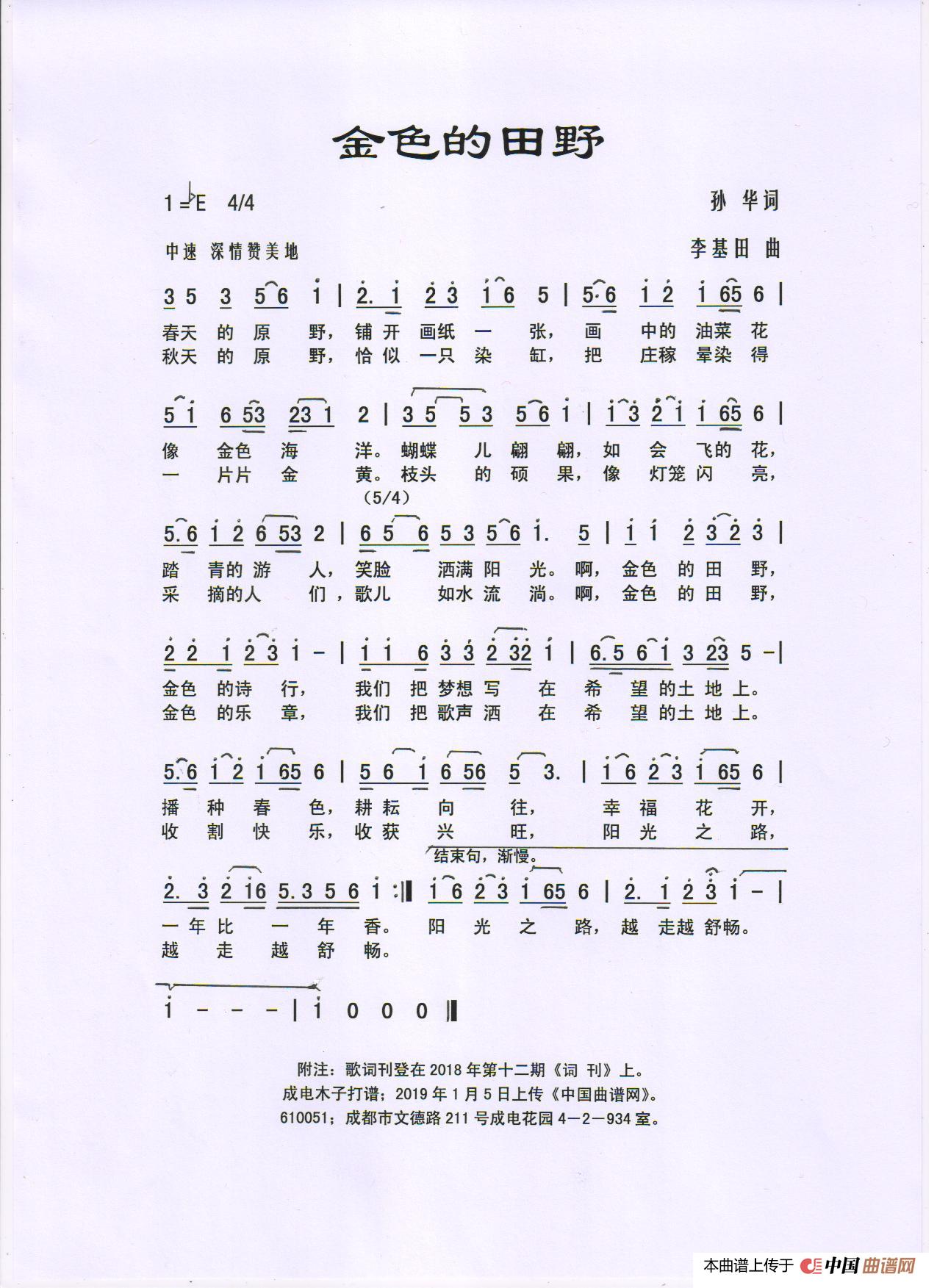金色的田野简谱 成电木子个人制谱园地 中国曲谱网