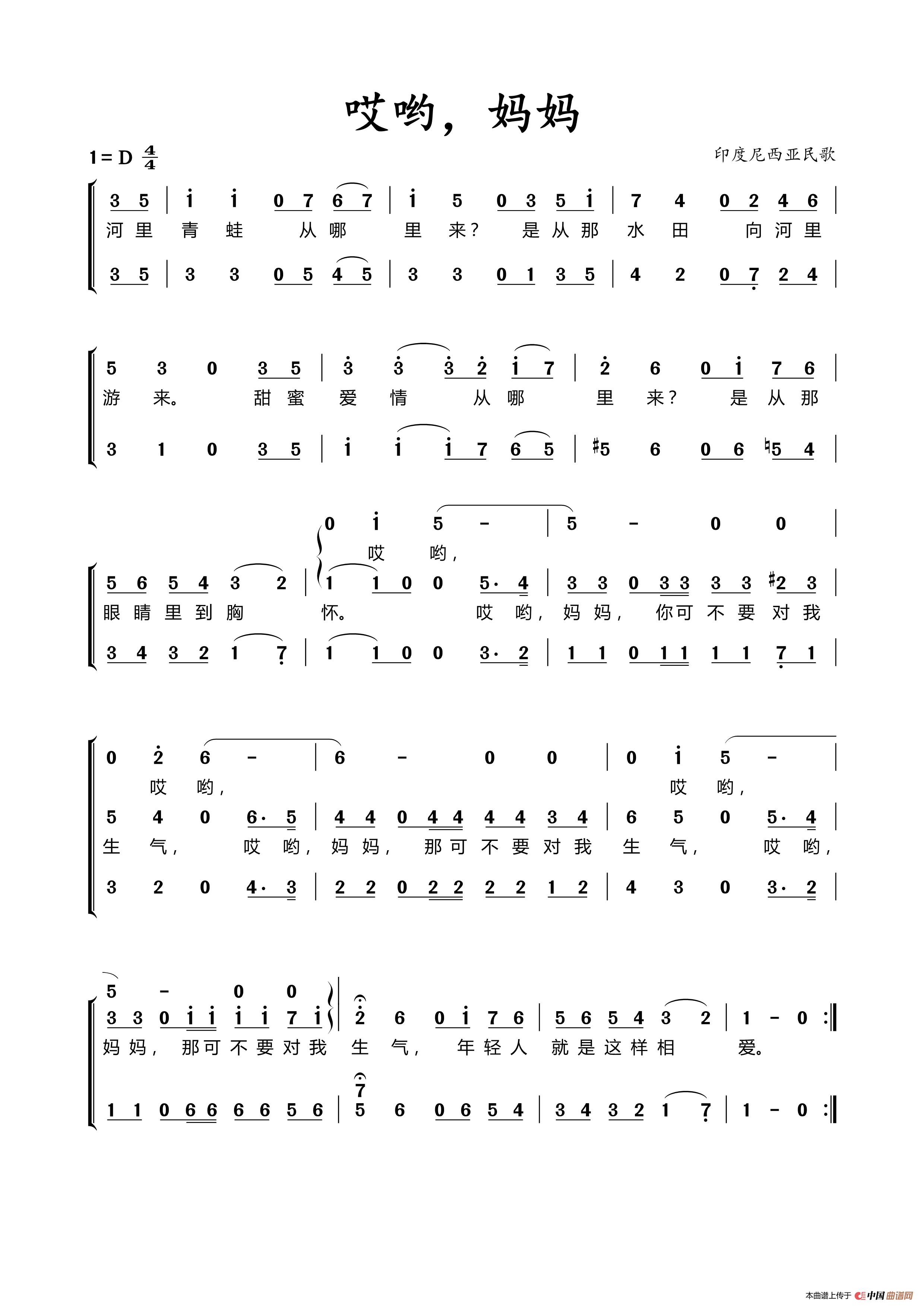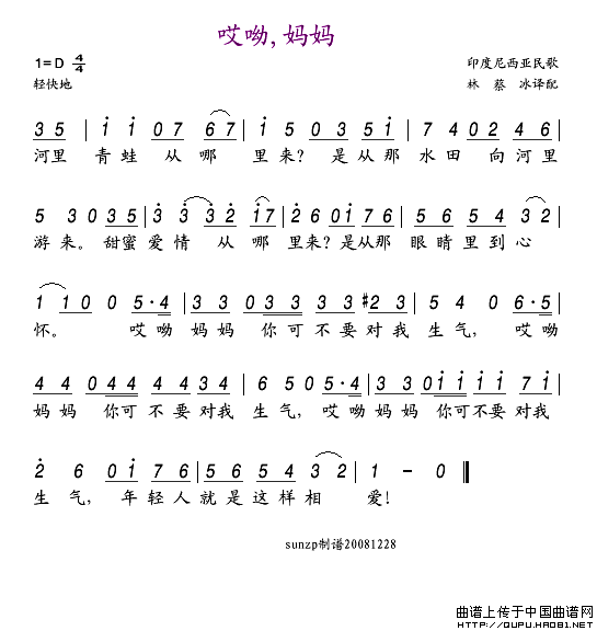 哎呦妈妈简谱 sunzp个人制谱园地 中国曲谱网