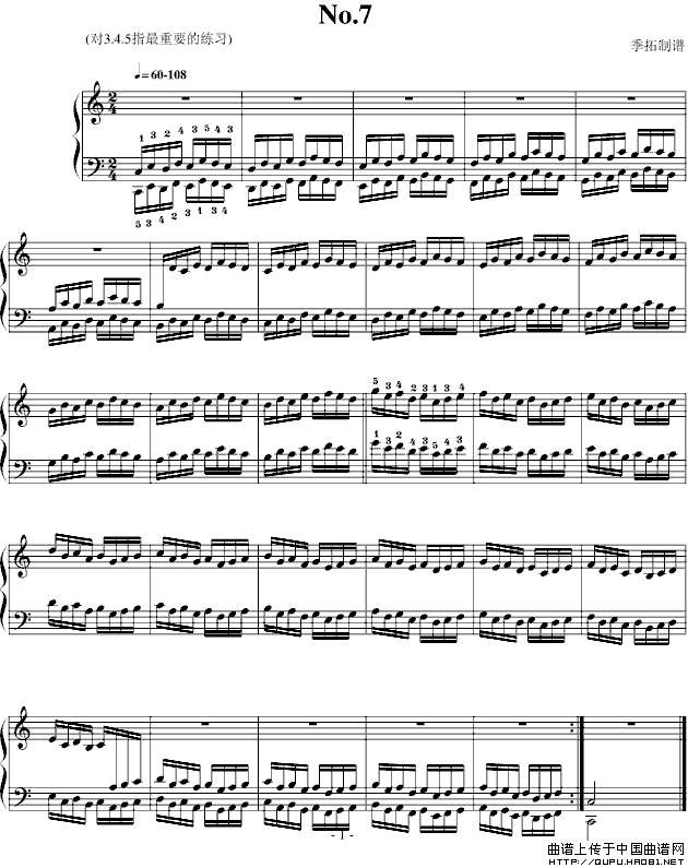 哈农指法练习钢琴谱 7 器乐乐谱 中国曲谱网