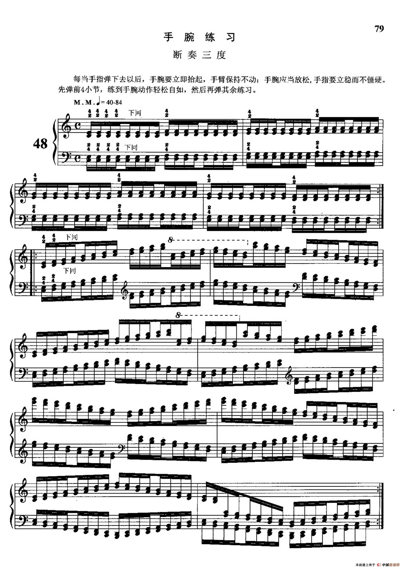 哈农钢琴练指法钢琴谱 第三部分 48 49 手腕练习断奏三度 器乐乐谱 中国曲谱网