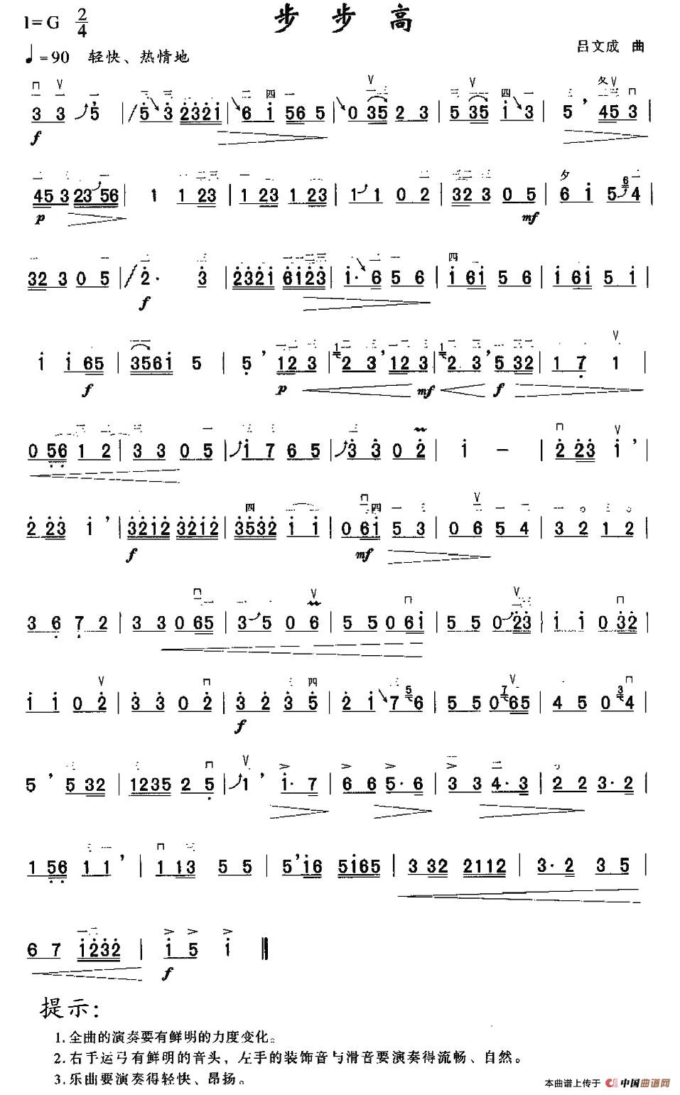 步步高二胡简谱 步步高二胡独奏曲谱