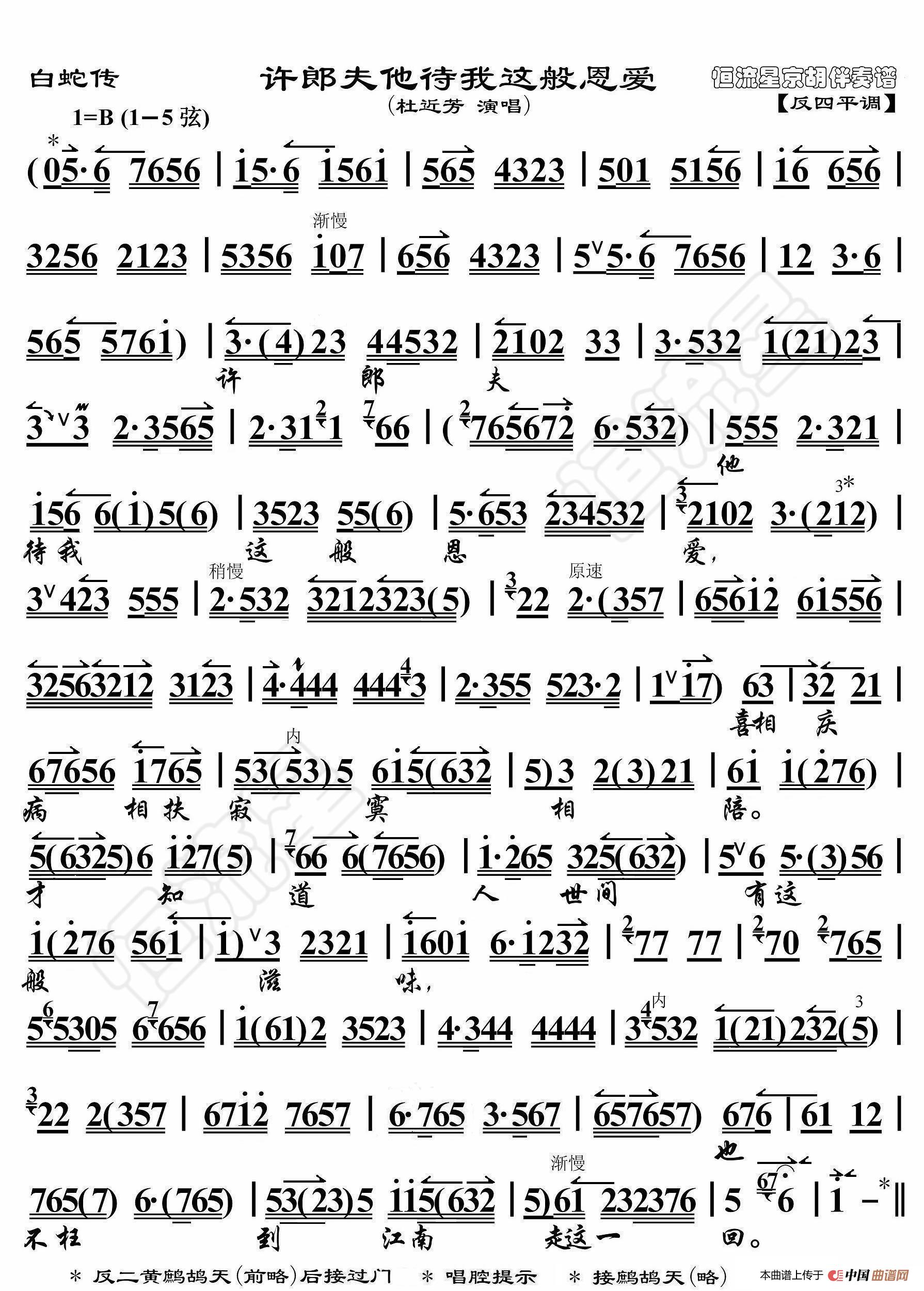 白蛇传 许郎夫他待我百般恩爱 京胡伴奏谱