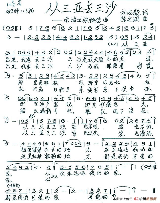 从三亚去三沙简谱 刘志毅词 陈之洞曲 谱友园地 中国曲谱网