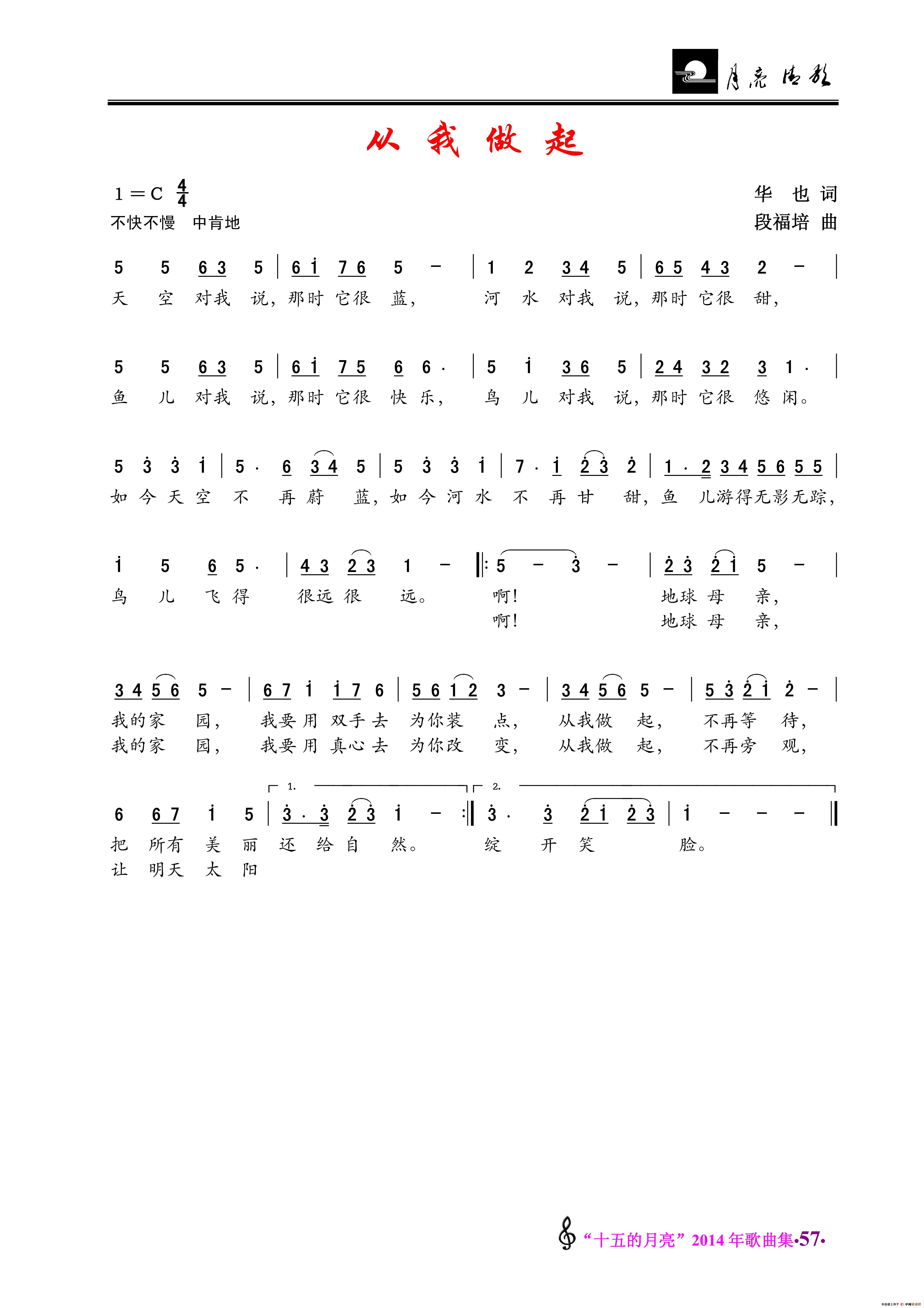 从我做起简谱 华也词 段福培曲 叶金剑个人制谱园地 中国曲谱网