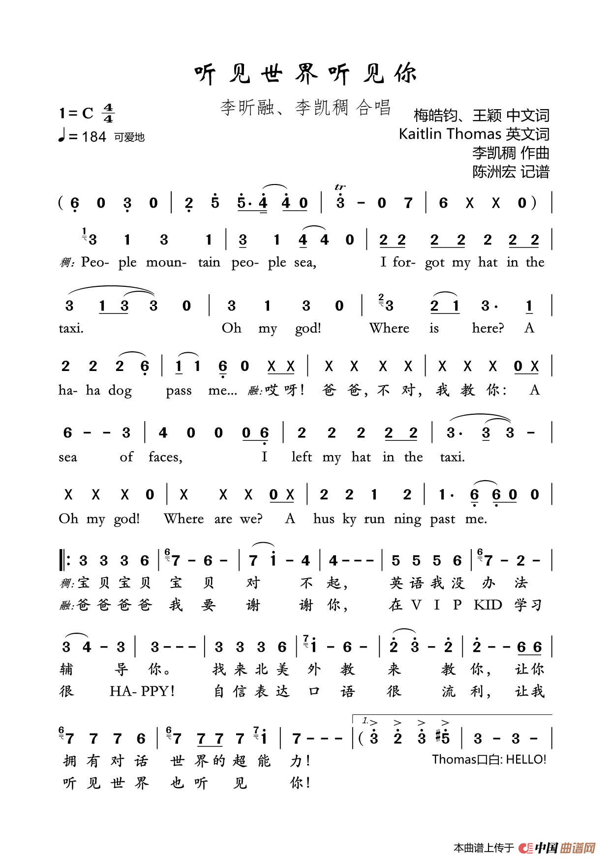 原创音乐曲谱 听见歌声,来到身旁 原创歌曲四三拍 Powered by Discuz