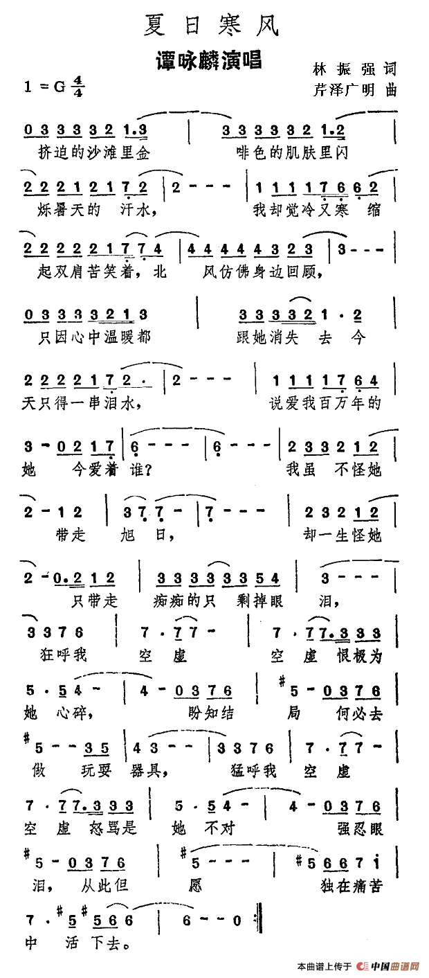夏日寒风简谱 通俗曲谱 中国曲谱网