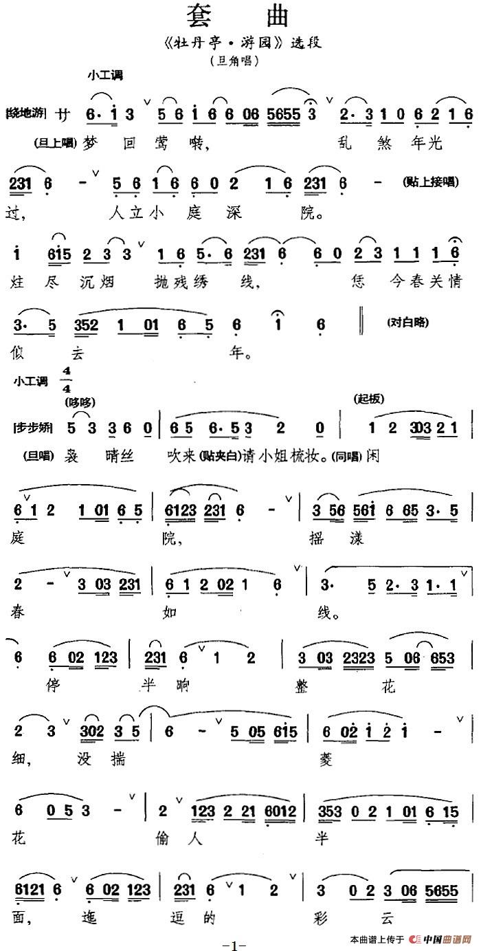 套曲戏曲谱 牡丹亭 游园 选段 旦角唱段 戏曲曲谱 中国曲谱网