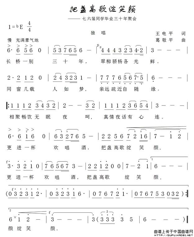 把盏高歌绽笑颜简谱 民歌曲谱 中国曲谱网