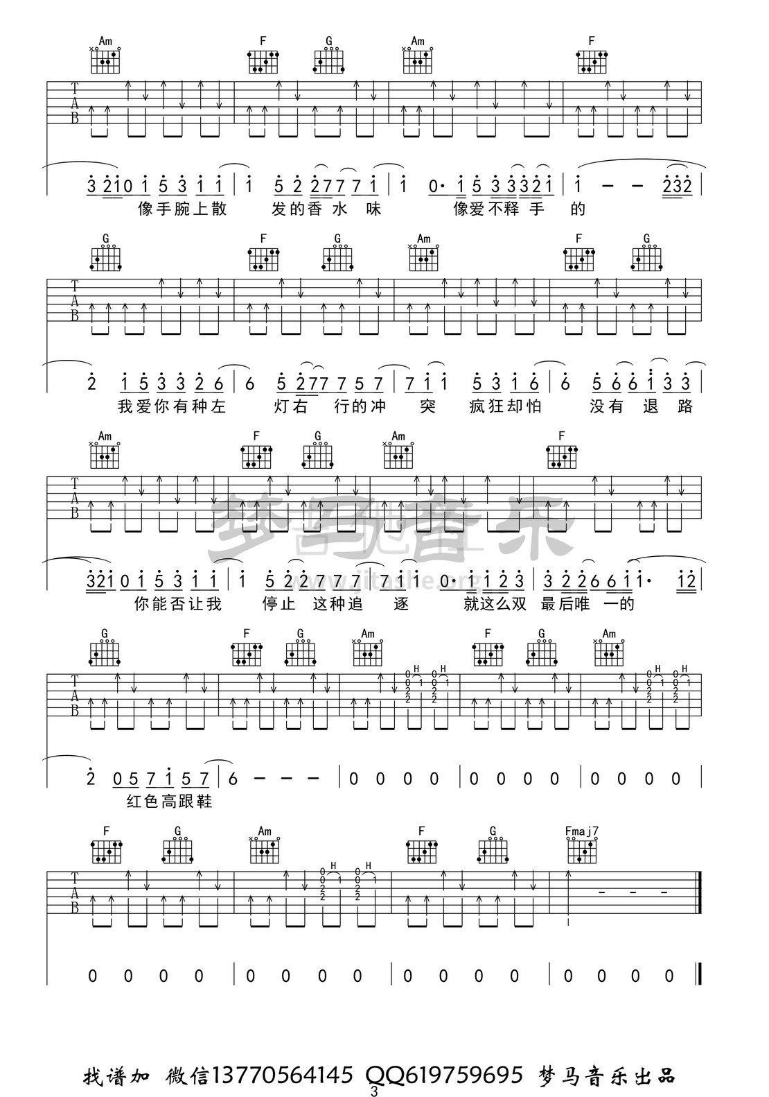 红色高跟鞋吉他谱 图片谱,弹唱 蔡健雅 Tanya Chua