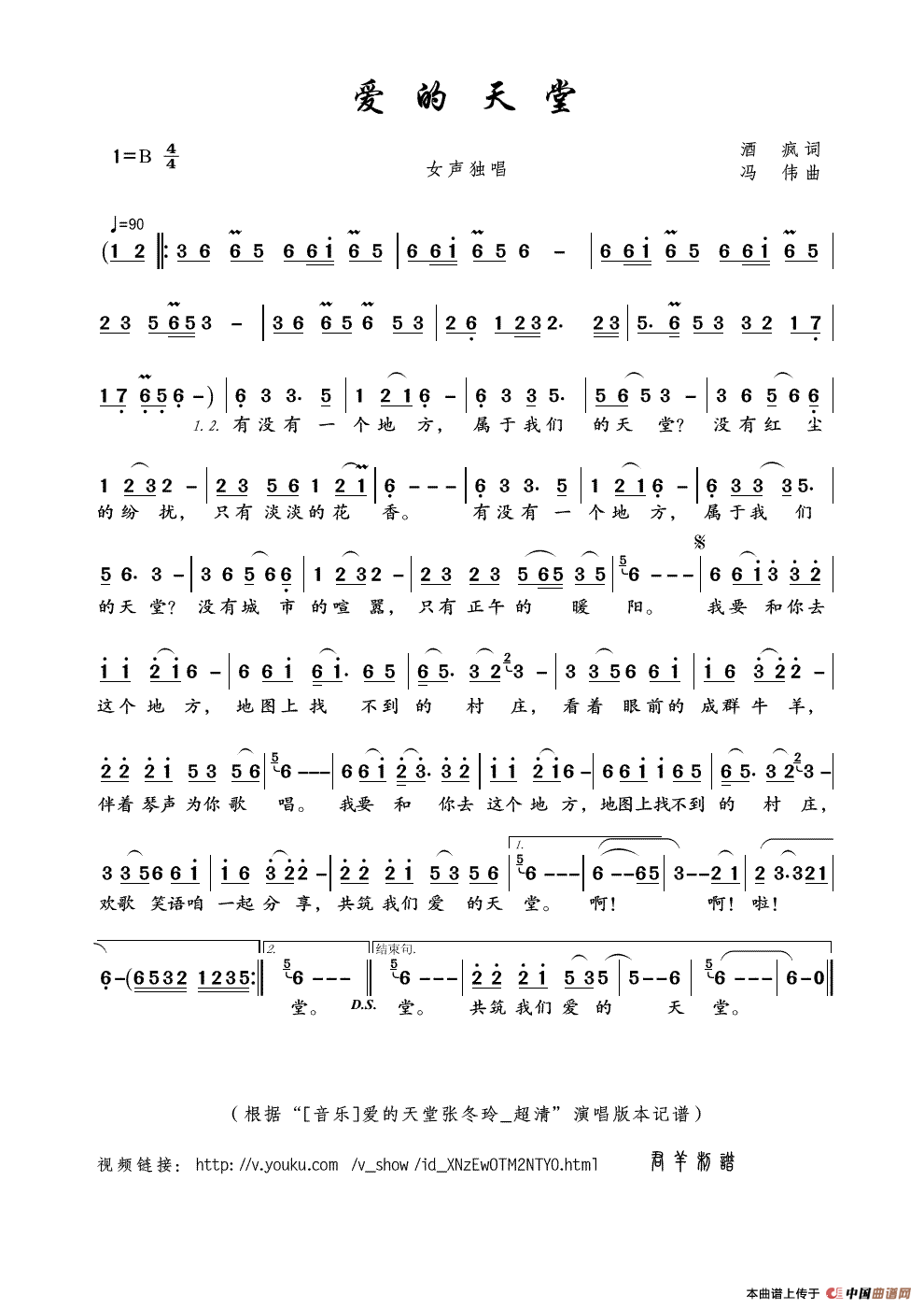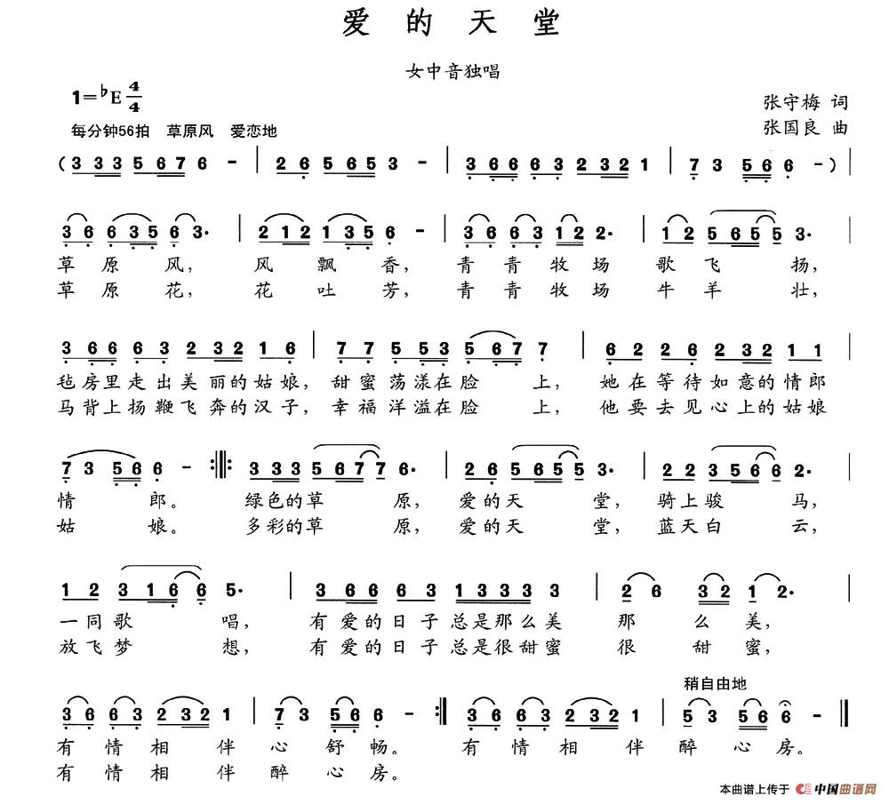 爱的天堂简谱 张守梅词 张国良曲 民歌曲谱 中国曲谱网