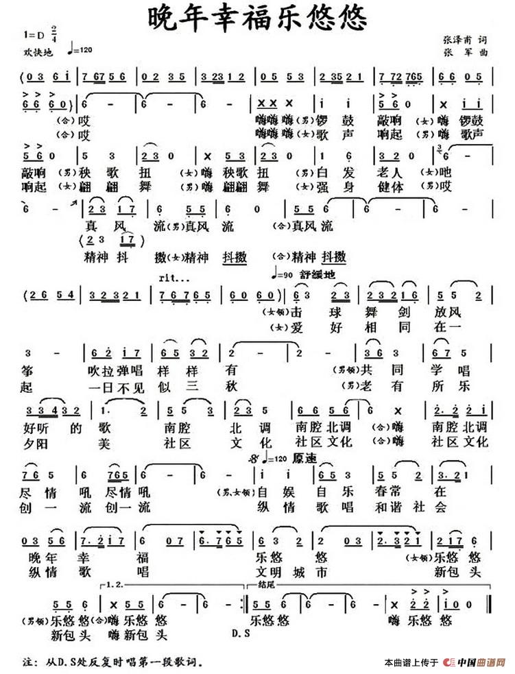 晚年幸福乐悠悠简谱 民歌曲谱 中国曲谱网