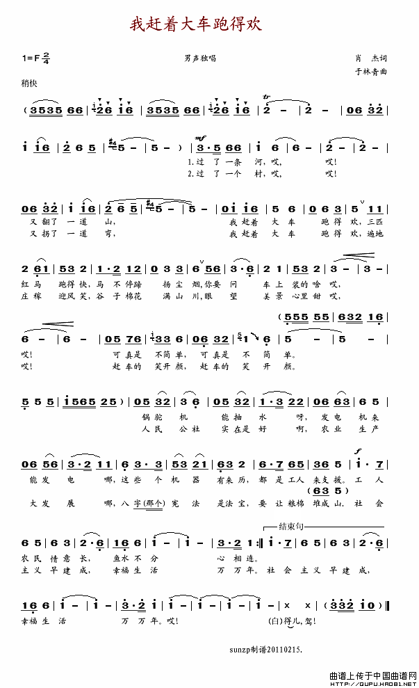 我赶着大车跑得欢简谱 sunzp个人制谱园地 中国曲谱网