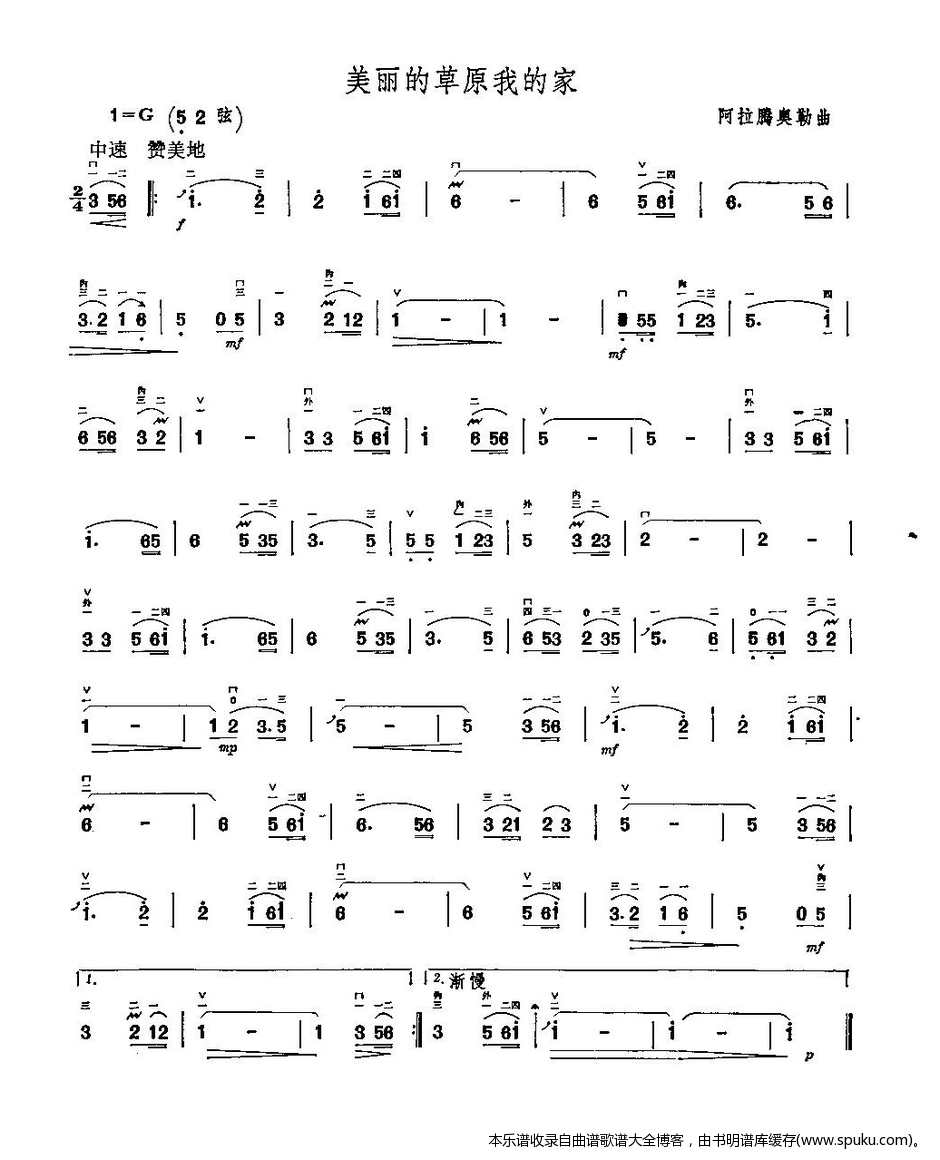 美丽的草原我的家二胡 美丽的草原我的家二胡简谱 美丽的草原我的家二胡吉他谱 钢琴谱 查字典简谱网