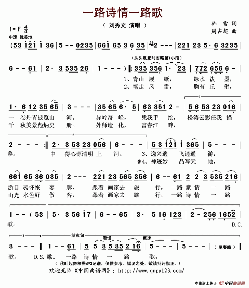一路诗情一路歌简谱 秋叶起舞个人制谱园地 中国曲谱网