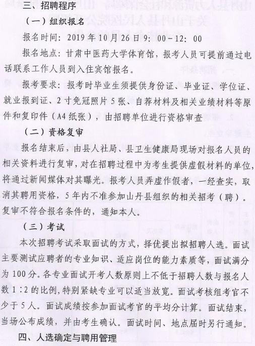 甘肃张掖山丹县人民医院招聘专业技术人员10人