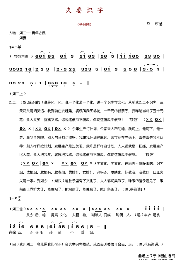 夫妻识字简谱 秧歌剧完整版 sunzp个人制谱园地 中国曲谱网