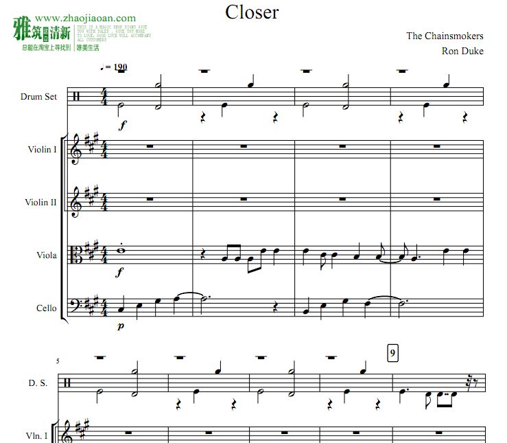 烟鬼版 The Chainsmokers Closer弦乐四重奏爵士鼓谱
