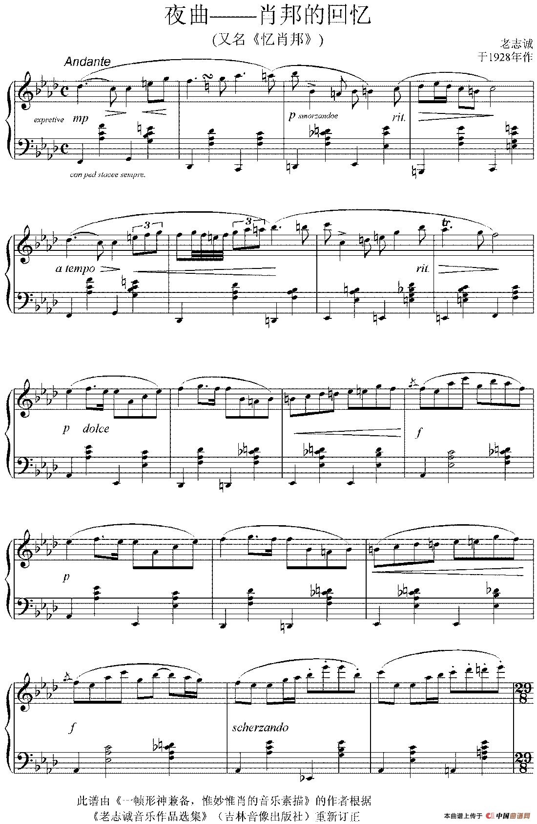 夜曲 肖邦的回忆钢琴谱 又名 忆肖邦 器乐乐谱 中国曲谱网