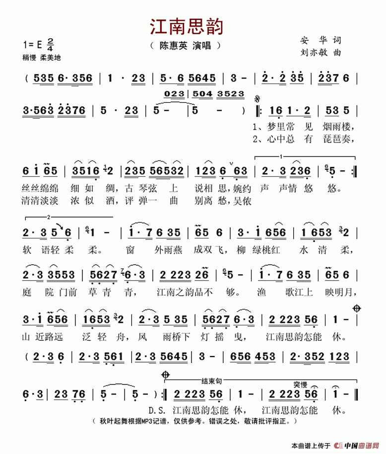 江南思韵简谱 秋叶起舞个人制谱园地 中国曲谱网