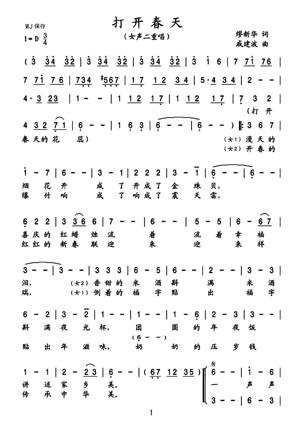打开春天 李晖打开春天 打开春天 李晖打开春天简谱 打开春天 李晖打开春天吉他谱 钢琴谱 查字典简谱网