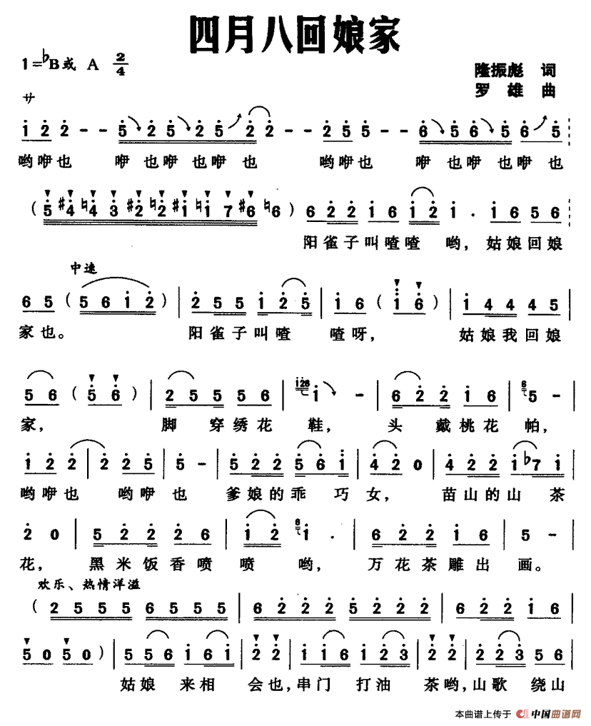 六月六,回娘家简谱 叶金剑词 段福培曲 民歌曲谱 中国曲谱网