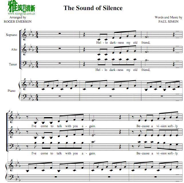 寂静之声The Sound of Silence 三声部合唱钢琴伴奏谱